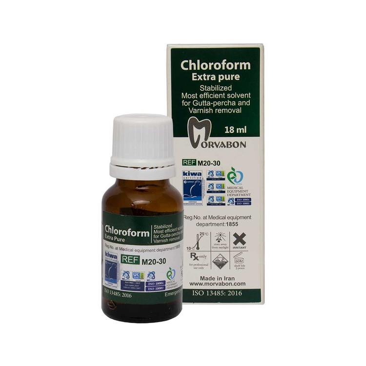 کلروفرم ۱۸ میل مروابن یک حلال تخصصی و قدرتمند در درمانهای اندودنتیک است که برای انحلال گوتاپرکا و سیلرهای قدیمی داخل کانال ریشه به کار میرود.