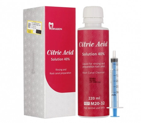 اسید سیتریک مروابن (Morvabon Citric Acid) یک محلول تخصصی برای پاکسازی نهایی کانال ریشه در درمانهای اندودانتیک است که با غلظت ۴۰٪، بهطور مؤثر لایه اسمیر (Smear Layer) و رسوبات معدنی ایجادشده در دیواره عاج را از بین میبرد.