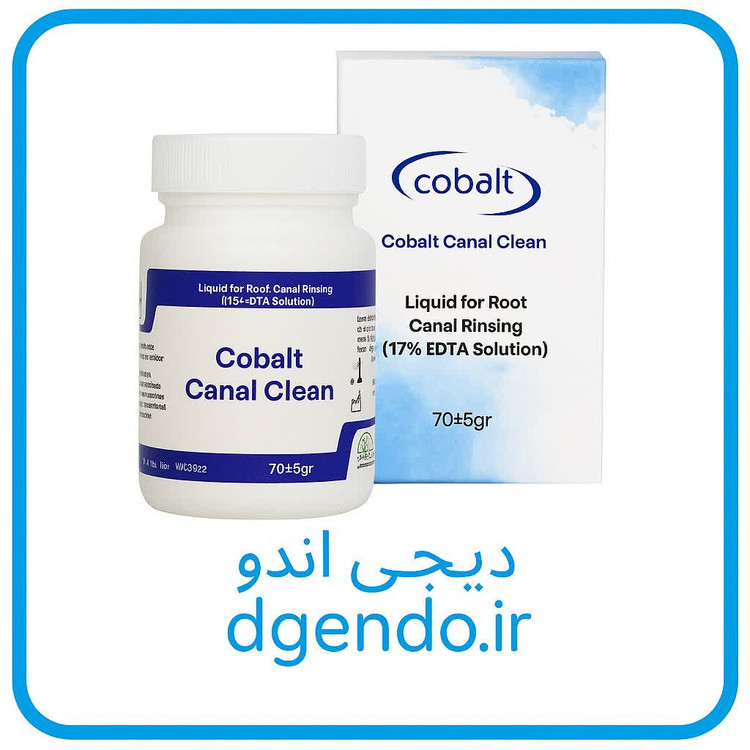 محلول شستوشو دهنده کانال کبالت (Cobalt Canal Clean) یک محلول حرفهای بر پایه EDTA 17٪ است که بهطور ویژه برای پاکسازی دیوارههای کانال ریشه در درمانهای اندودانتیک طراحی شده است. این محلول با خاصیت کلیتکنندگی قوی، به حذف مؤثر لایه اسمیر (Smear Layer) و بقایای معدنی ناشی از تراش مکانیکی کمک میکند و مسیر کانال را برای نفوذ بهتر مواد ضدعفونیکننده و سیلر آماده میسازد.