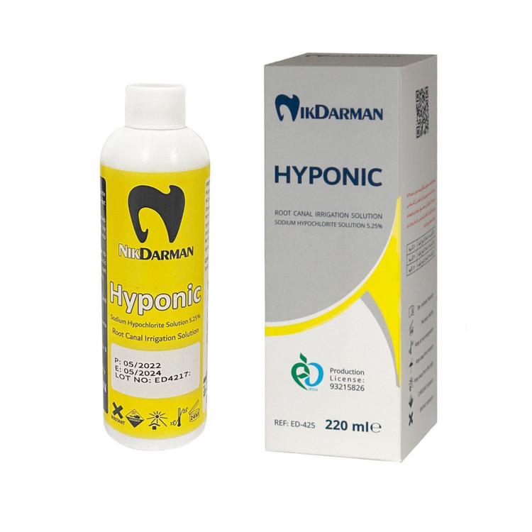 محلول هیپوکلریت سدیم نیک درمان (Nik Darman) با حجم ۲۲۰ میلیلیتر، یکی از مواد ضروری در درمانهای ریشه دندان (اندودنتیک) است. این محلول با ترکیب دقیق و کنترلشده، برای شستوشو، پاکسازی و ضدعفونی کانال دندان طراحی شده است.