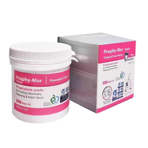 خمیر جرمگیری مروابن (Morvabon Prophy Paste) یک خمیر تخصصی برای جرمگیری و پولیش حرفهای دندانها در کلینیکها و مطبهای دندانپزشکی است. این محصول با فرمولاسیون بهروز و ایمن خود، علاوه بر پاکسازی مؤثر دندانها از پلاکهای میکروبی و جرمهای سطحی، باعث ایجاد سطحی صاف و براق روی دندان میشود.