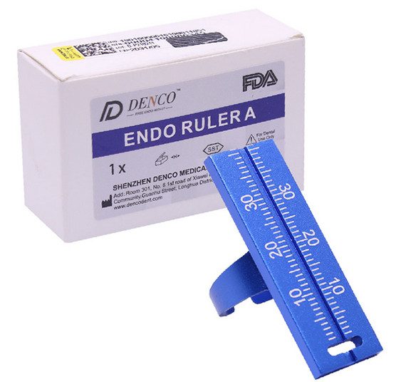 اندومتر انگشتری دنکو (DENCO Endo Ruler Ring) یک ابزار ساده اما کاربردی در اندودانتیکس است که برای اندازهگیری طول ابزارهای اندودنتیک (فایلها، ریمِرها، گیتس دریلها و …) در حین درمان ریشه استفاده میشود. این وسیله به شکل یک حلقه فلزی یا پلاستیکی طراحی شده که روی انگشت دست دندانپزشک قرار میگیرد و دارای خطکش مدرج میلیمتری است.