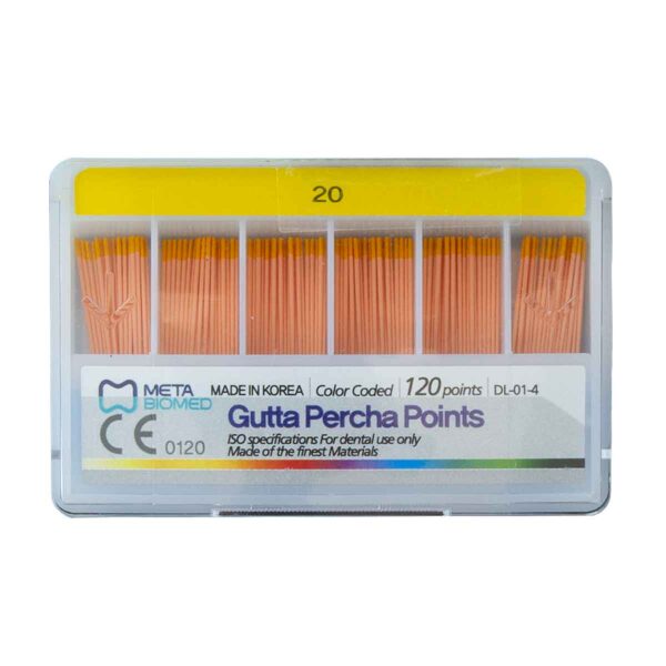 گوتا پرکا ۲ درصد متا (META Gutta Percha Cones 2%) یکی از محبوبترین و دقیقترین مواد پرکننده کانال ریشه در درمانهای اندودنتیک است که توسط برند معتبر META Biomed کره جنوبی تولید میشود. این گوتاپرکاها به دلیل کیفیت بالا، انعطافپذیری مناسب و سازگاری کامل با کانال دندان، در بسیاری از کلینیکها و مراکز دندانپزشکی به عنوان انتخاب اول دندانپزشکان استفاده میشوند.